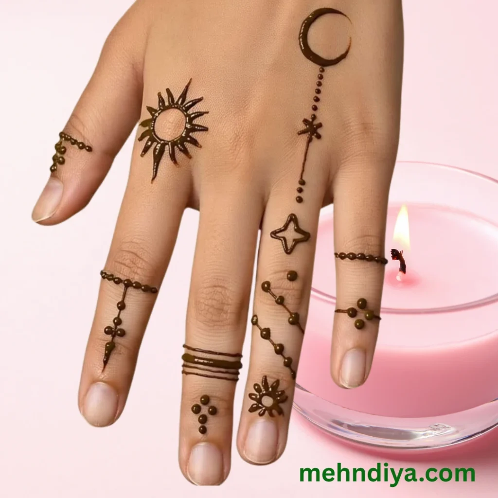 Small floral patterns on palms and fingers are perfect for younger kids. They’re easy to apply, quick to dry, and look incredibly cute. - Stars, Moons & Eid Symbols 🌙⭐